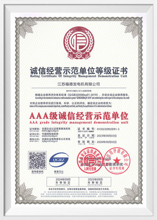 | Tempo de recuperação de frequência ≤ 3S | Tempo de recuperação de tensão ≤1S (tensão ±3%) |